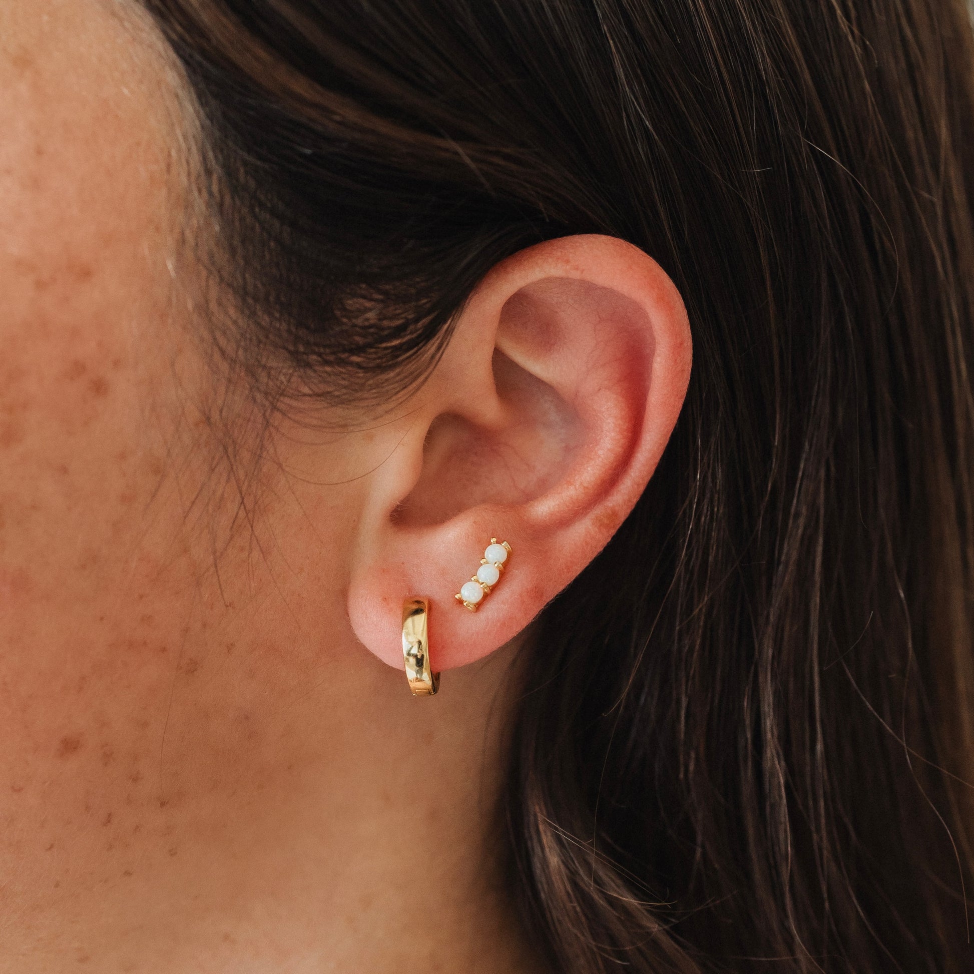 The Angela studs are an effortless wear. This gorgeous opal stone is a symbol of hope and truth to balance your energy.