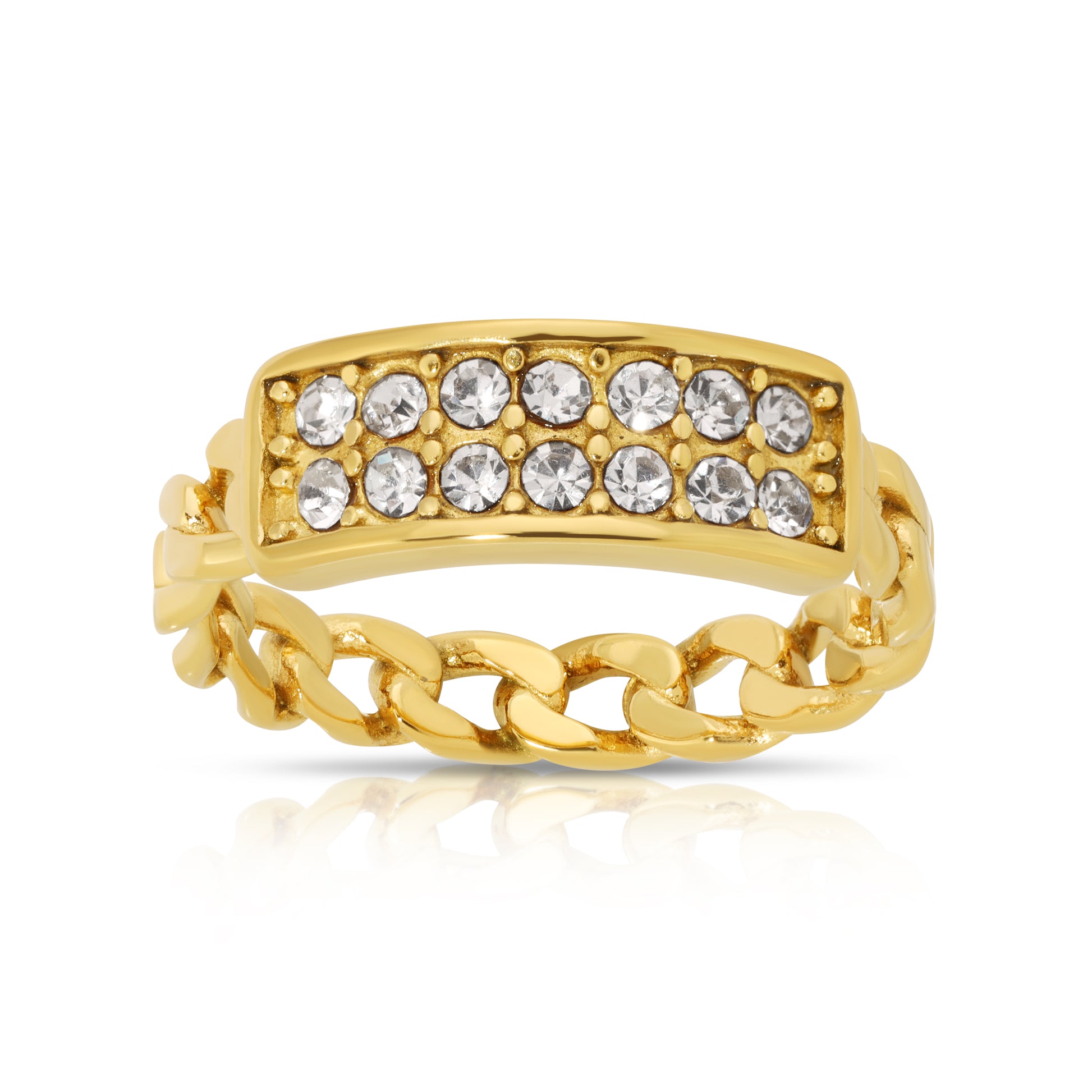 The Gia ring features a beautiful chain band with just the right amount of sparkle. The cubic zirconia studs are perfection.