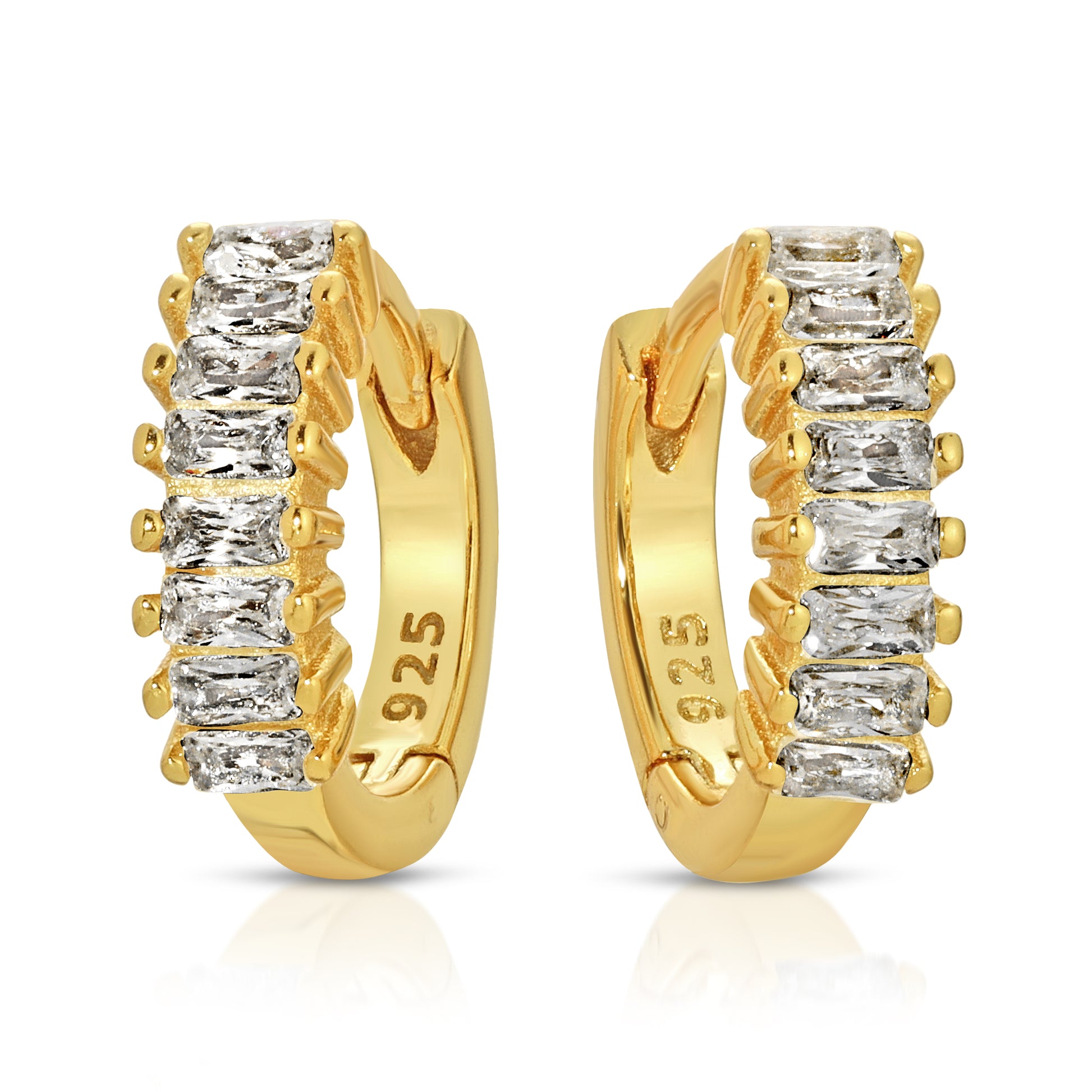 The Isabella huggie hoops are subtly chic and petite. The sparkling cubic zirconia detail adds an elegant touch to this simple style.