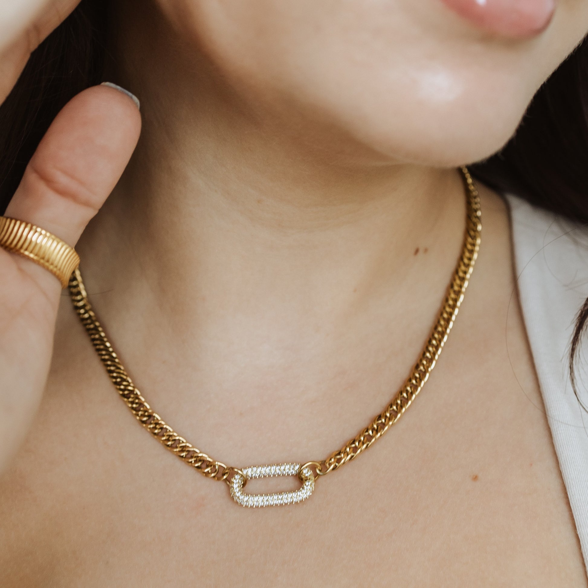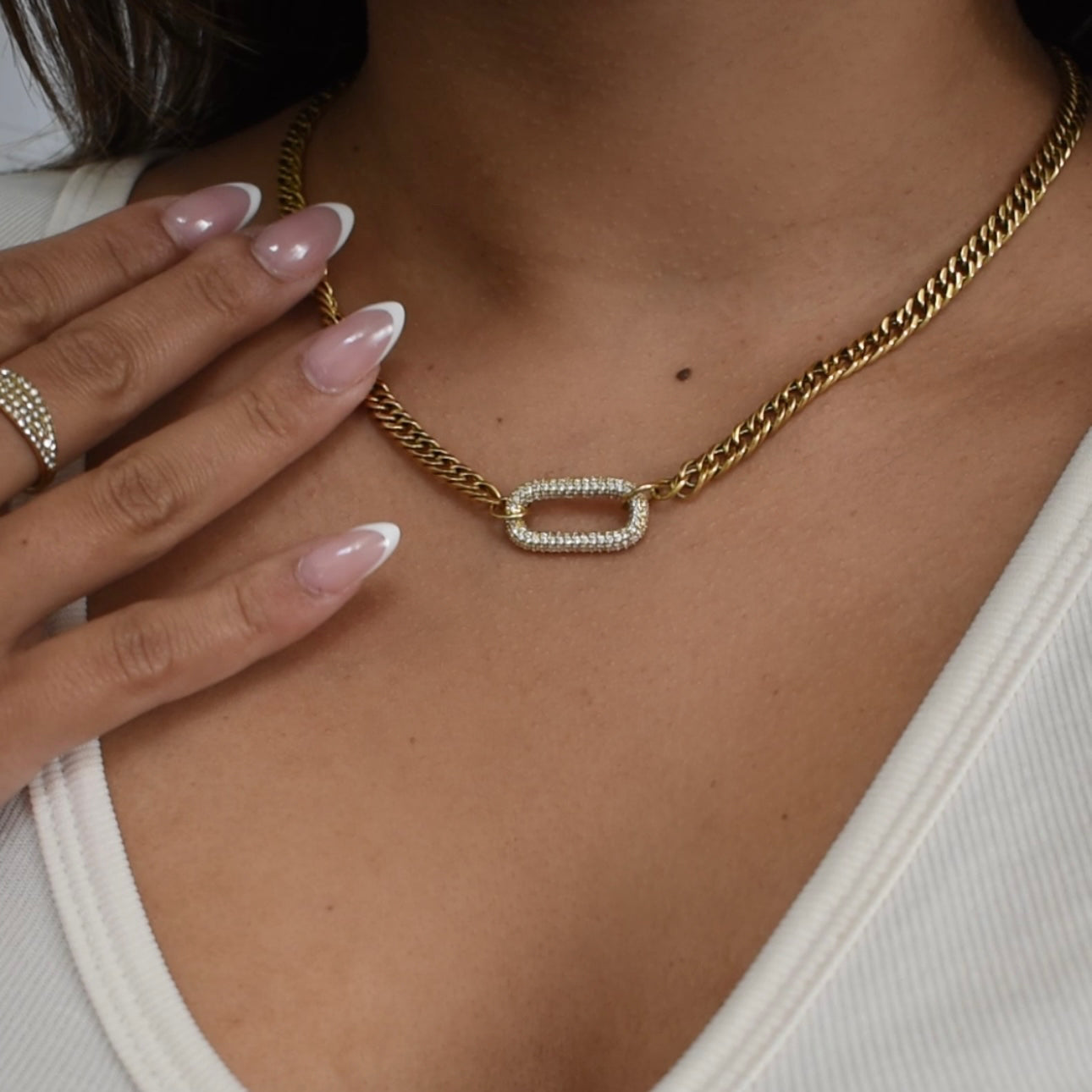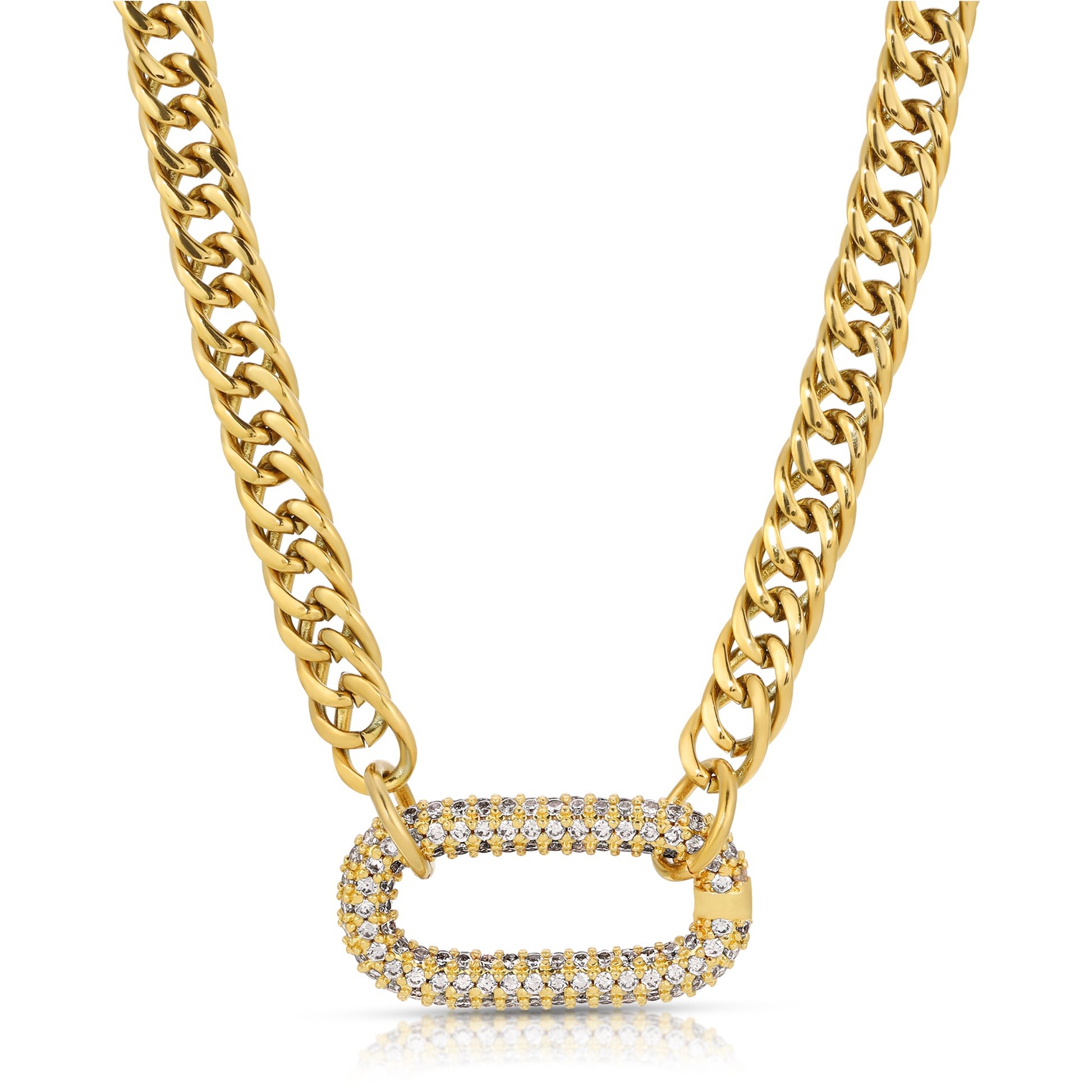 The Kiana necklace unlocks a world of style. Our CZ-studded carabiner pendant gives a luxurious look and feel.