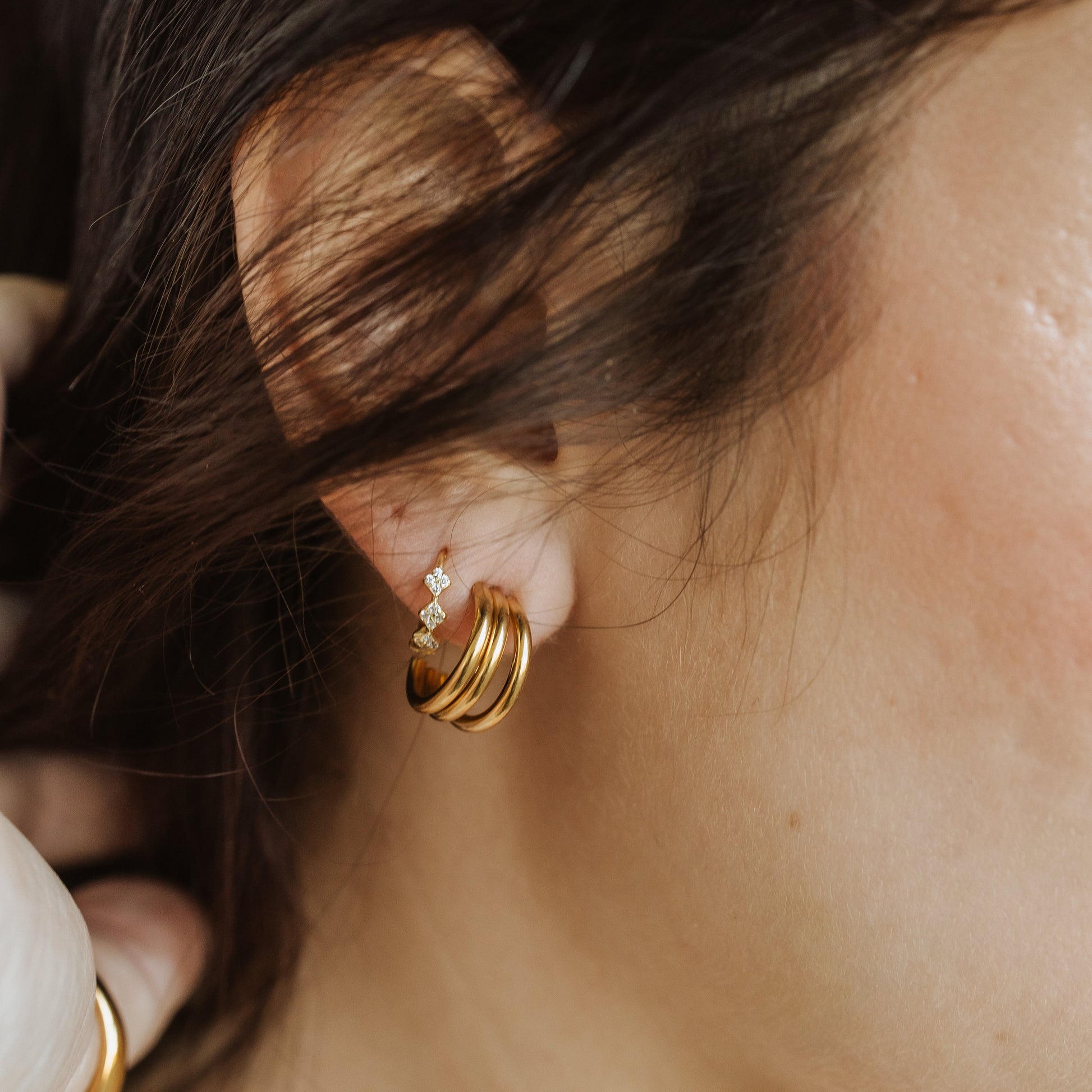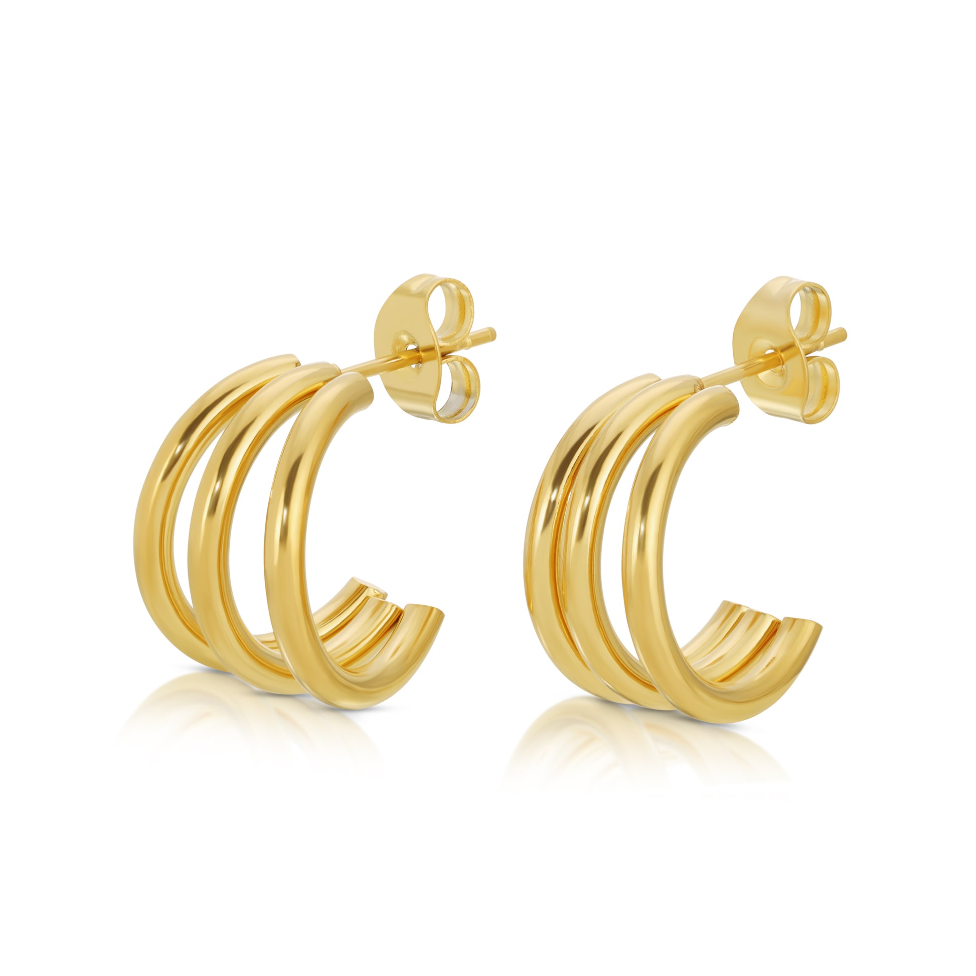 The Lisa earrings redefine hoop goals. Elevate your hoop game with this triple row design that is three times the fun.