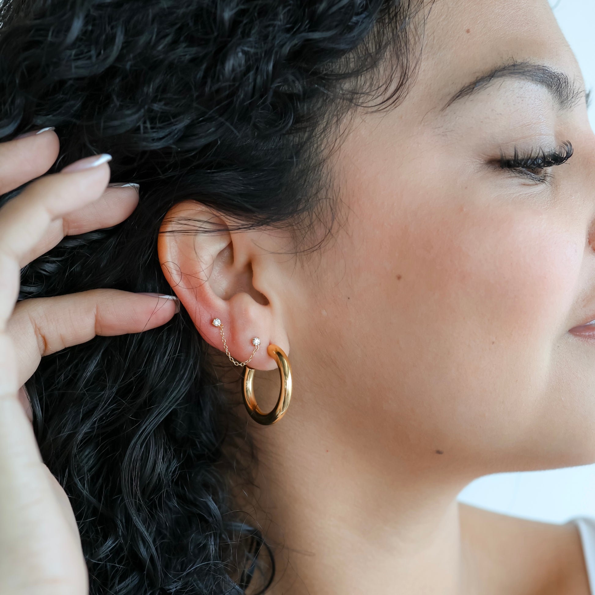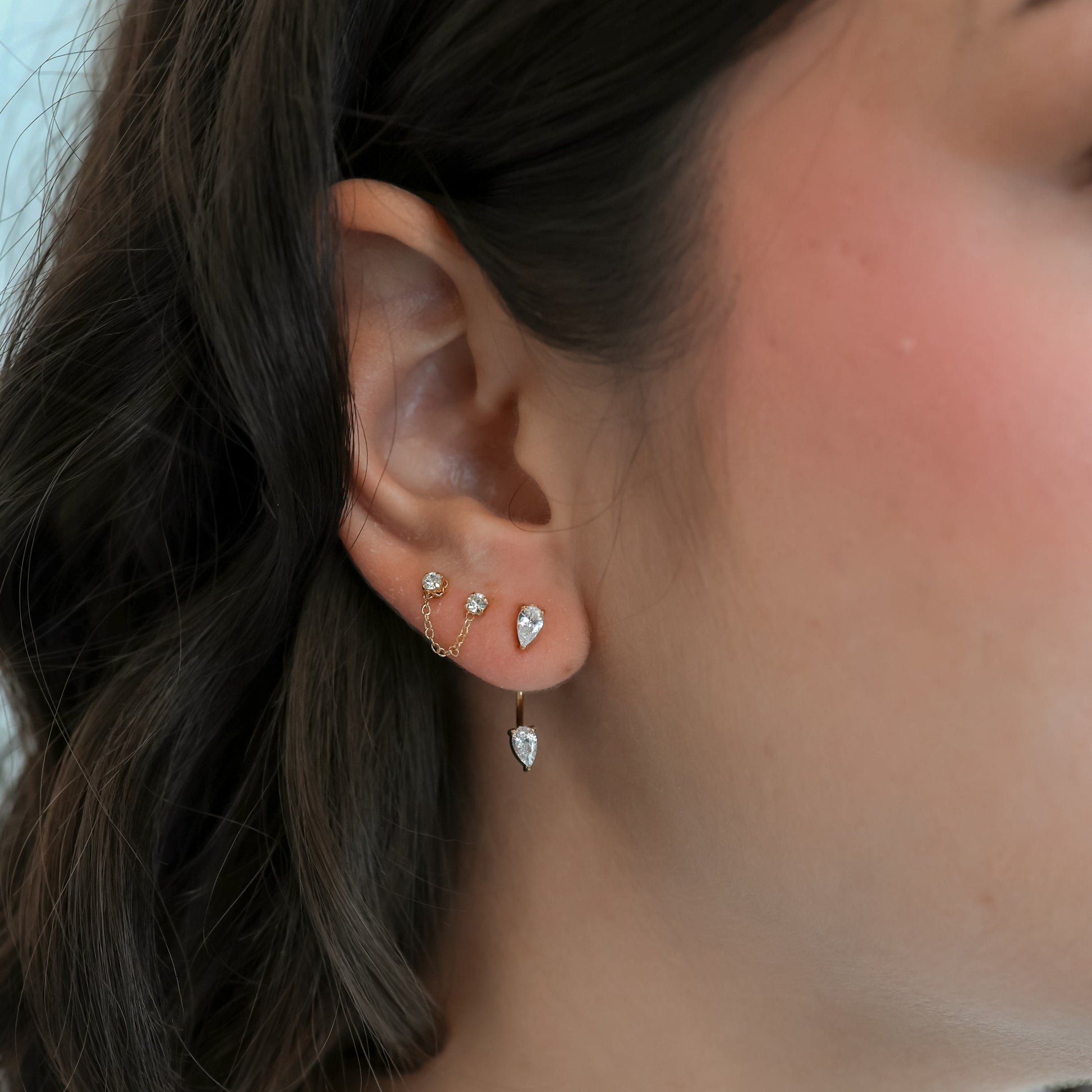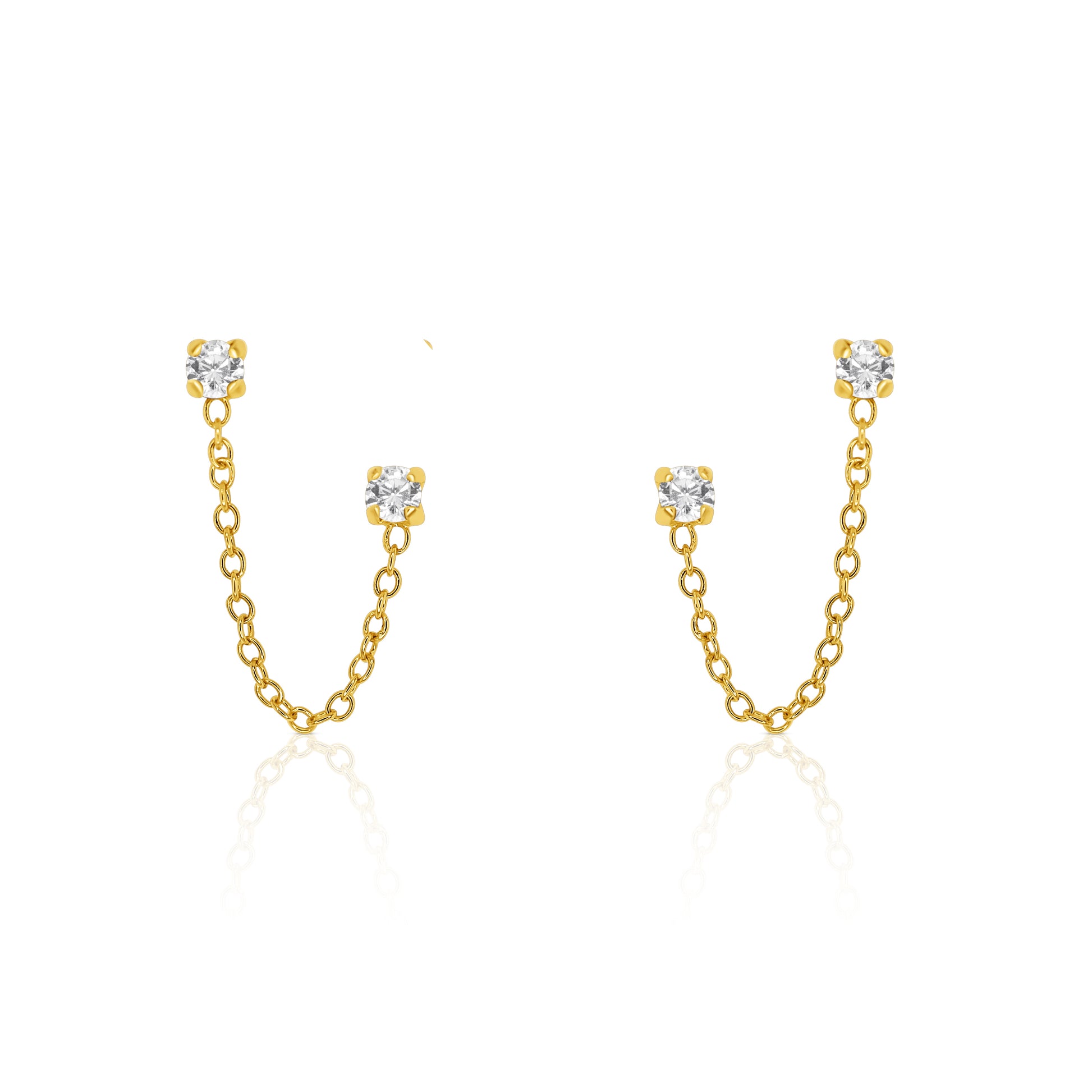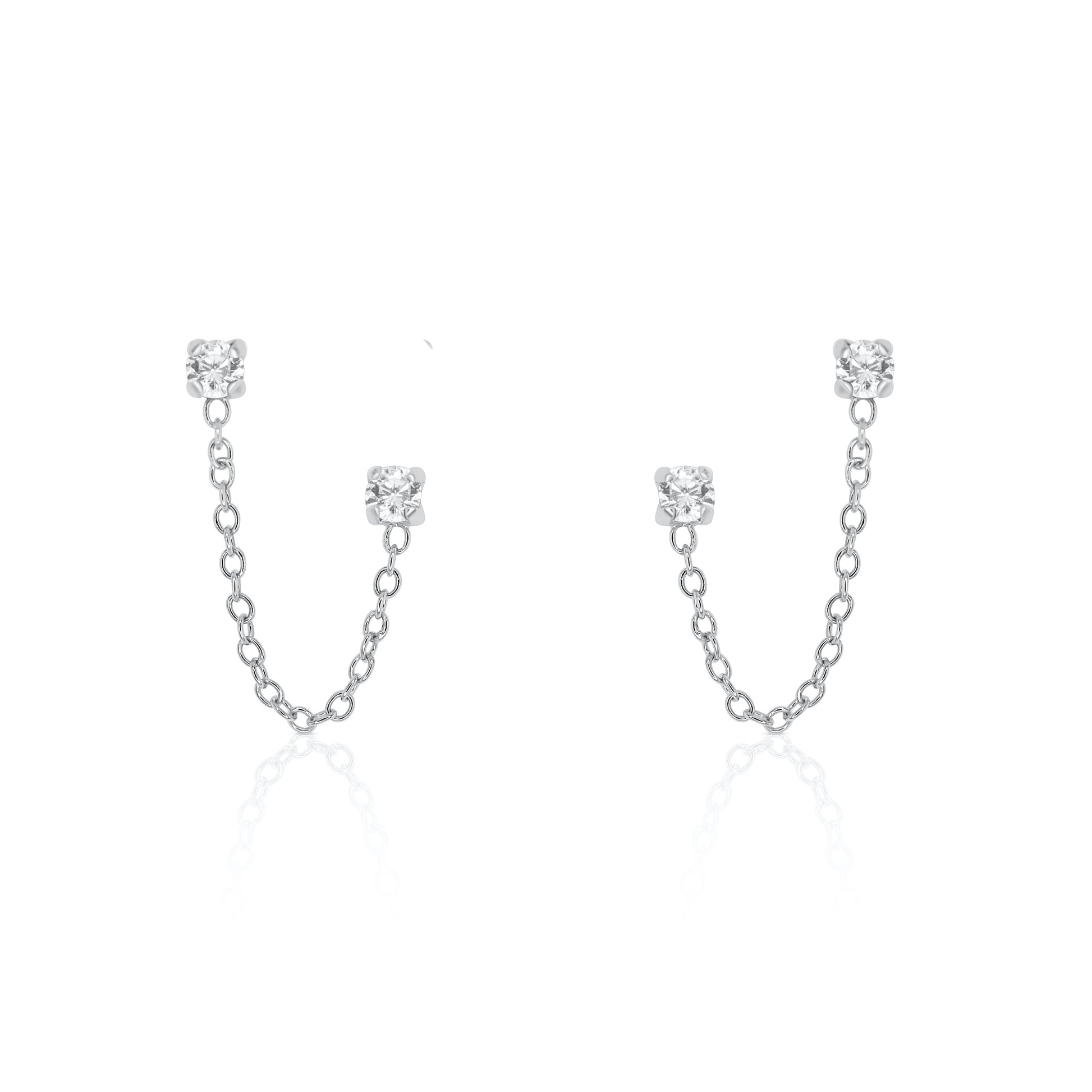 The Nicole earrings were made for double piercings with a dual post design and delicate chain detail. It's the perfect way to elevate your stack and add a subtle hint of sparkle.