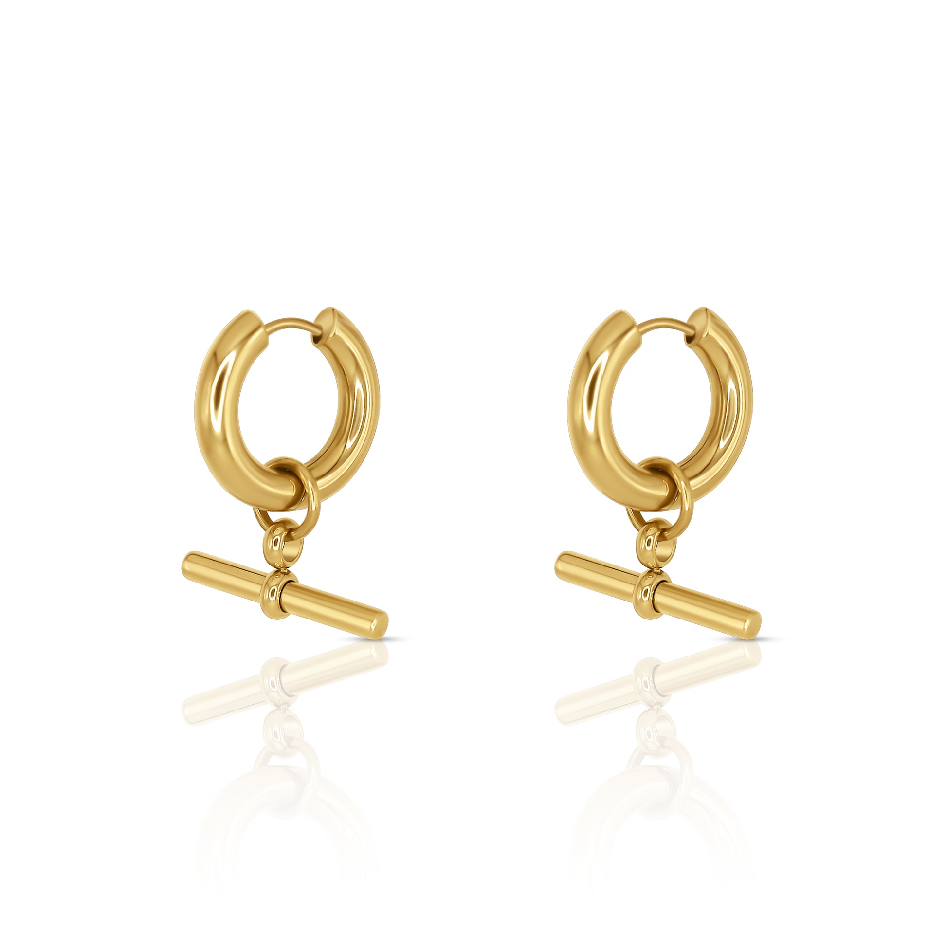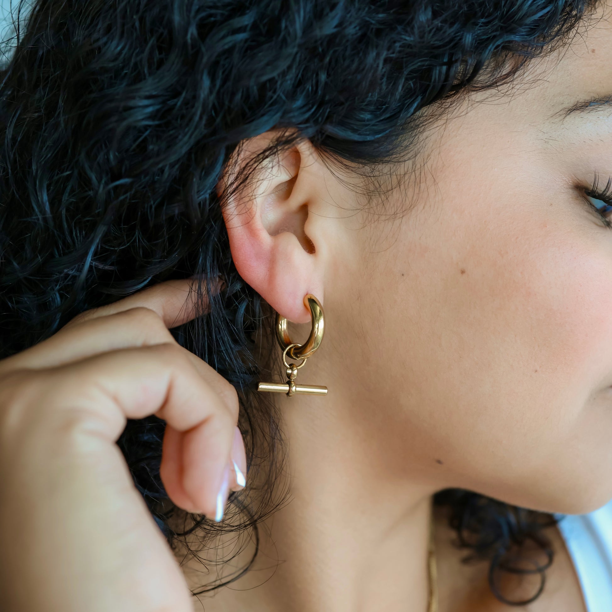 The Quinn earrings put a modern twist on classic hoops with a sleek toggle bar pendant that adds style and edge. Effortlessly cool, they’re the perfect statement from day to night.