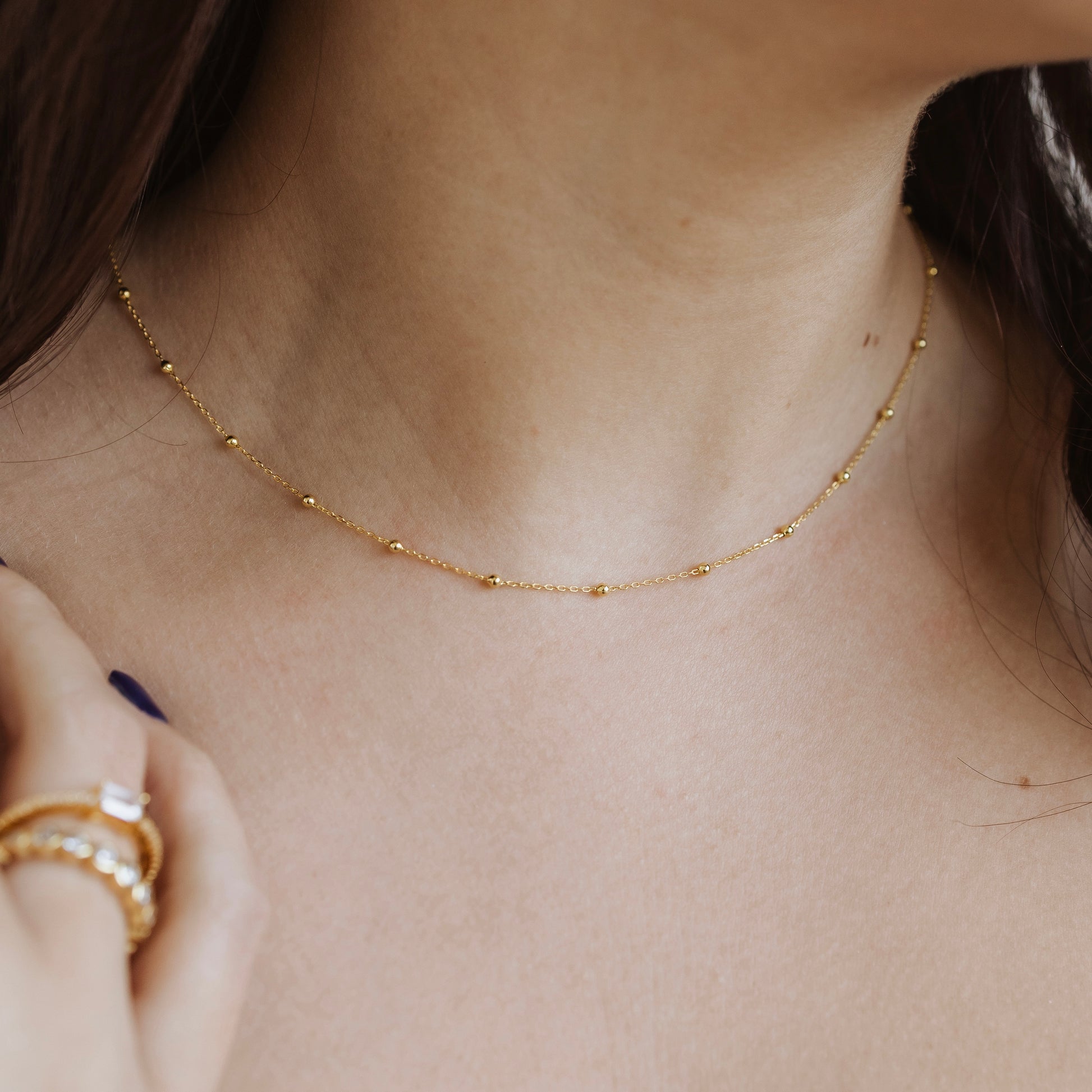 The Tessa necklace is an absolute essential. This dainty chain is the perfect base for a necklace stack or an elegant statement all on its own.