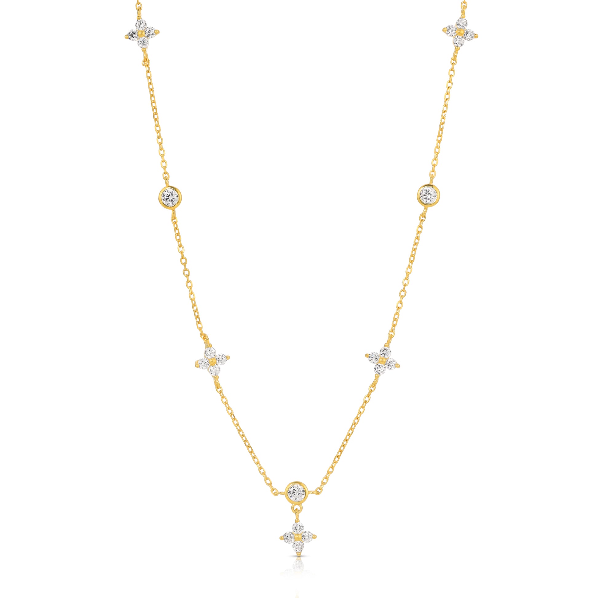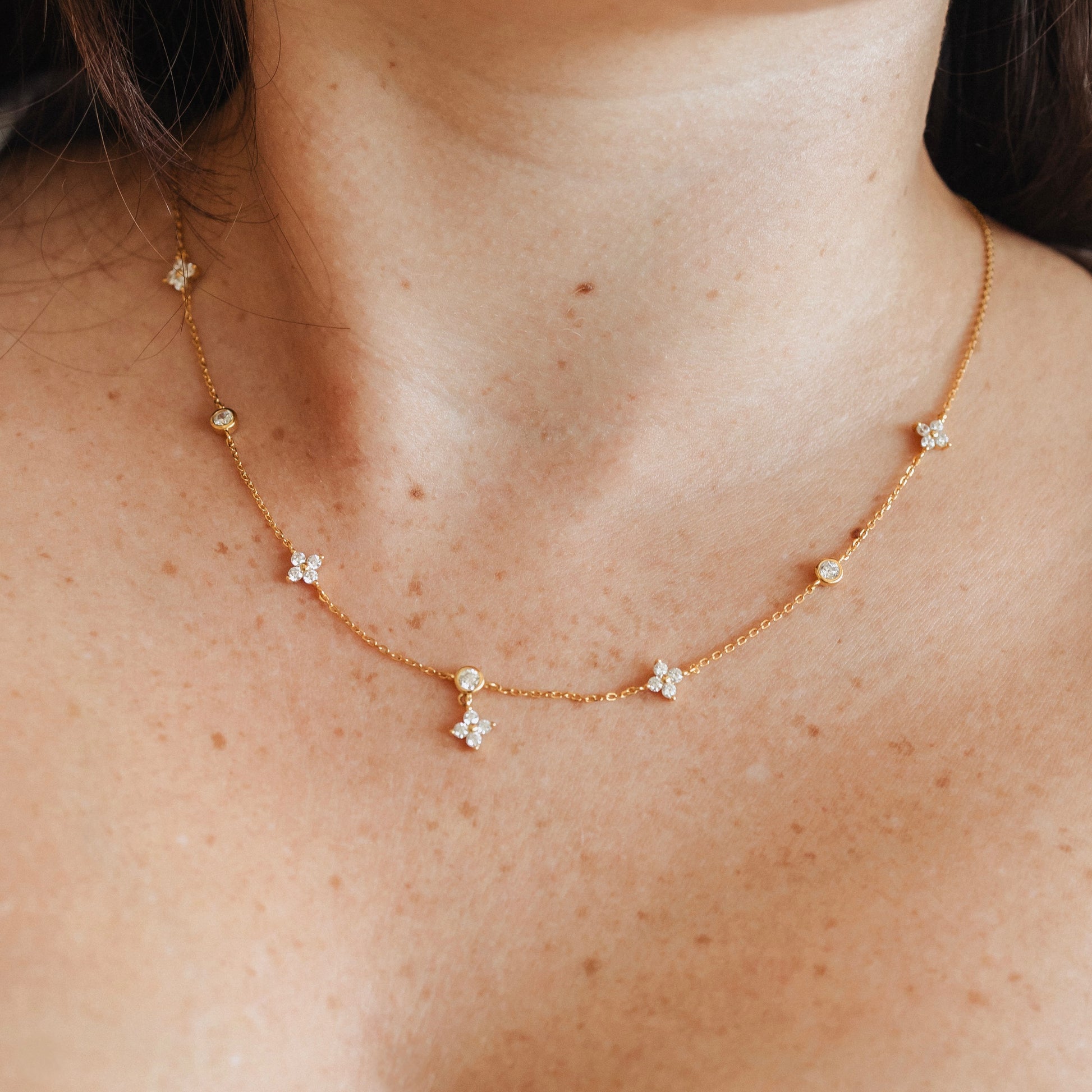 The Vanessa necklace features dazzling clover pendants alongside delicate CZ stones. It's so gorgeous you'll never want to take it off.